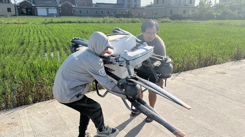 “開始只是覺得飛無人機(jī)很酷,飛行、噴灑就像操控電子游戲一樣,后來隨著作業(yè)服務(wù)的慢慢深入,我們都越來越感到責(zé)任重大,這份工作事關(guān)農(nóng)業(yè)生產(chǎn)和農(nóng)戶生計,必須踏踏實實地完成每一次作業(yè)。”說話的是26歲的浙農(nóng)飛防團(tuán)隊飛手曹益群,這次與他一起到嘉善西塘開展追肥服務(wù)的還有團(tuán)隊中26歲的肖金鵬、22歲的丁向洋,他們組成了一支平均年齡還不到25歲的為農(nóng)服務(wù)隊伍。