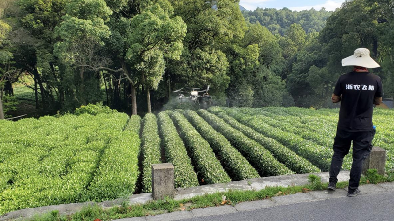 同時,浙農(nóng)飛防持續(xù)拓展服務(wù)功能,除了在大田糧油作物上的應(yīng)用,公司近年來在茶樹、香榧等經(jīng)濟(jì)作物上開展的飛防服務(wù)也頗受種植戶歡迎,浙農(nóng)飛防同時還深度參與了相關(guān)技術(shù)規(guī)范規(guī)程的標(biāo)準(zhǔn)制定工作。前期,浙農(nóng)飛防連續(xù)中標(biāo)西湖、淳安等地茶葉統(tǒng)防統(tǒng)治項目及諸暨稽東香榧無人機(jī)授粉項目,有效實現(xiàn)了為作物增產(chǎn)提質(zhì)?!跋裨谙汩忌?,無人機(jī)高空噴霧噴灑的方式基本上能夠做到精準(zhǔn)的全株授粉,在茶葉上則能做到均勻著藥著肥,前期我們還運(yùn)用無人機(jī)幫助茶農(nóng)吊運(yùn)茶青,大大節(jié)省了人力,可以說無人機(jī)作業(yè)的優(yōu)勢非常明顯。”浙農(nóng)飛防團(tuán)隊負(fù)責(zé)人王廣源這樣說。