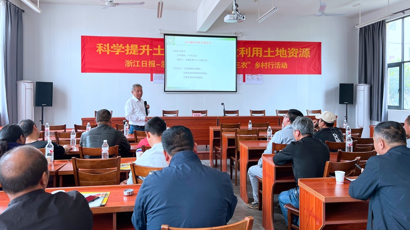 今年,浙江日報第17次聯合浙農控股集團開展服務“三農”鄉村行活動,以“科學提升土壤肥力 高效利用土地資源”為主題,關注糧食安全、耕地紅線等問題,還邀請中國水稻研究所研究員章秀福老師為當地水稻、小麥種植大戶作培訓,送上價值萬余元的優質農資產品。