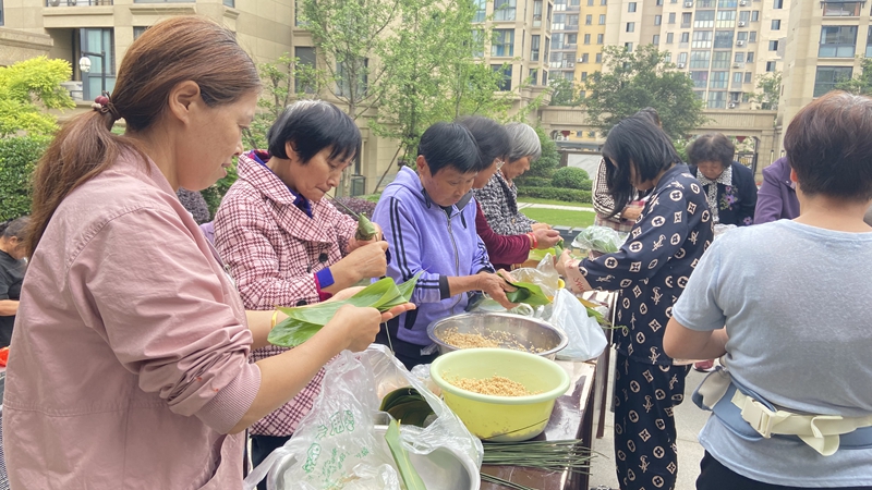 各物業(yè)管理處精心挑選應(yīng)時應(yīng)景的食材,邀請業(yè)主一同包粽子。業(yè)主們圍坐閑聊,手上不停,起葉、勺料、包形、扎繩,一頓操作行云流水、一氣呵成,沒一會兒就包出了一只只精巧美味的粽子。現(xiàn)場歡聲笑語縈繞,粽香四溢。